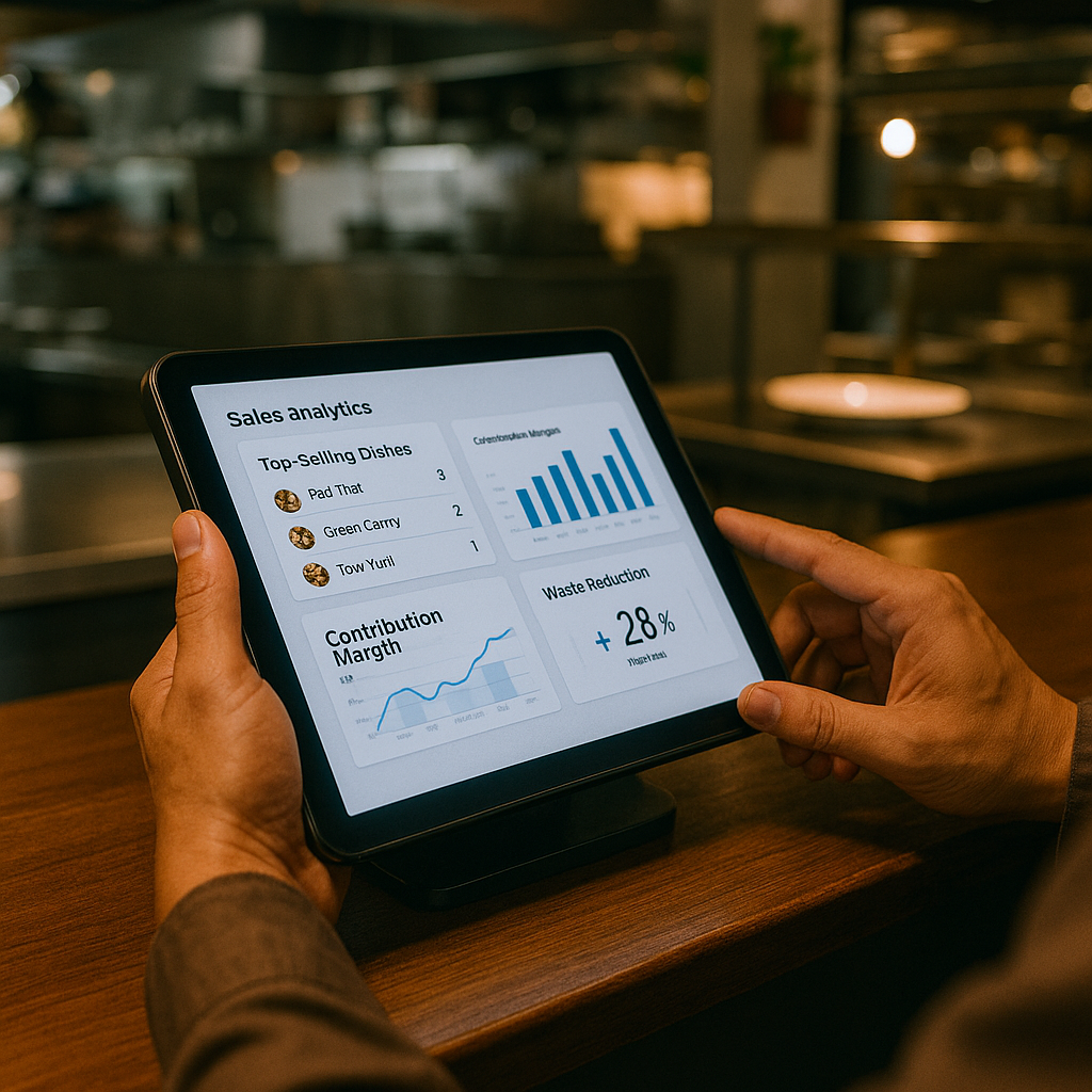 - Food Cost % เฉลี่ย: ลด 2–5 จุด